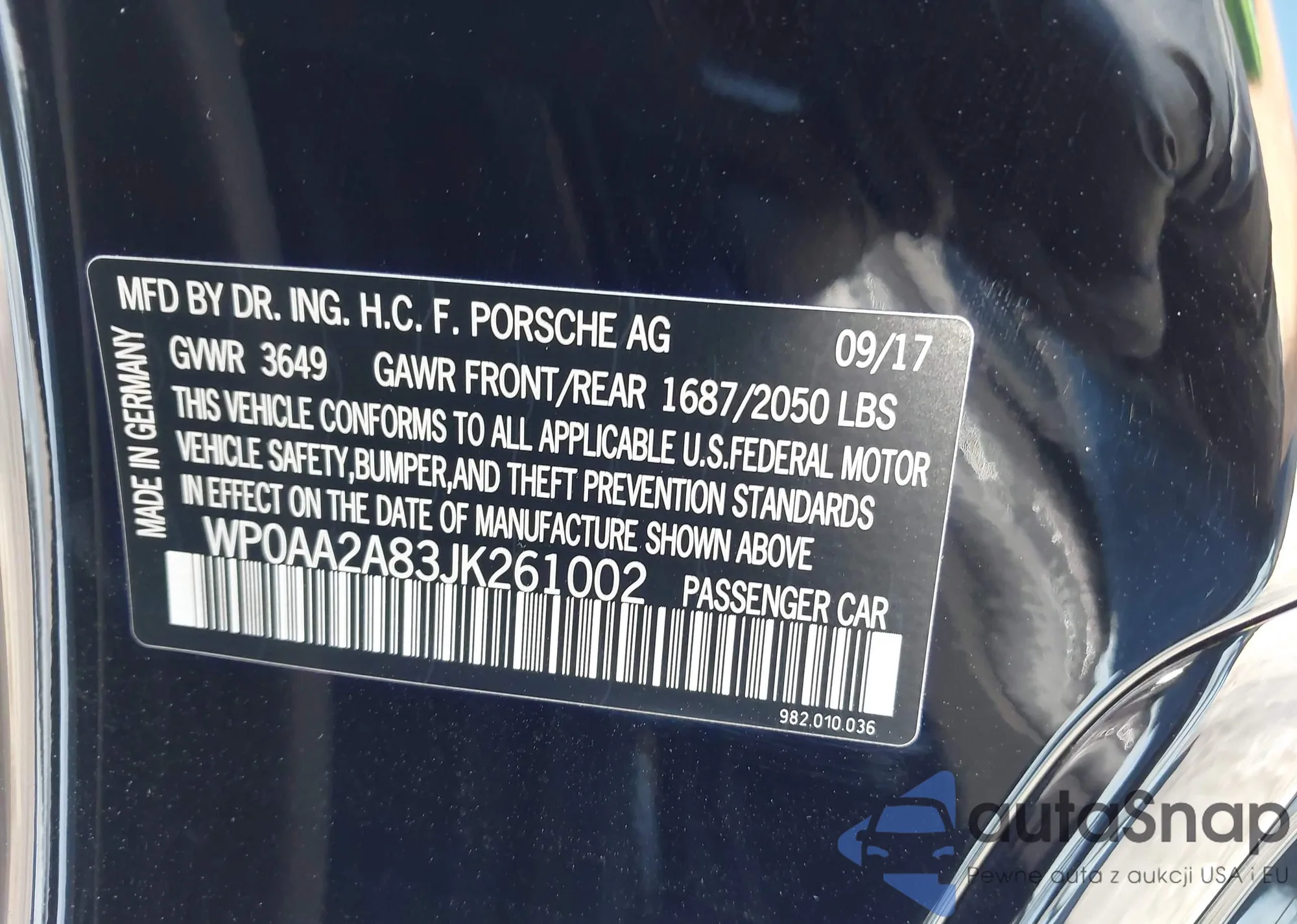 VIN: WP0AA2A83JK261002