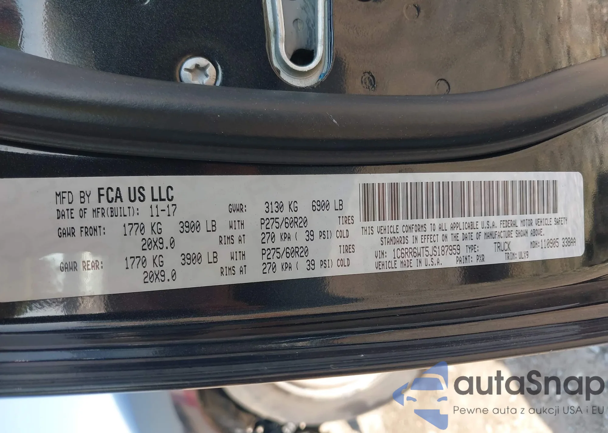 VIN: 1C6RR6WT5JS187959