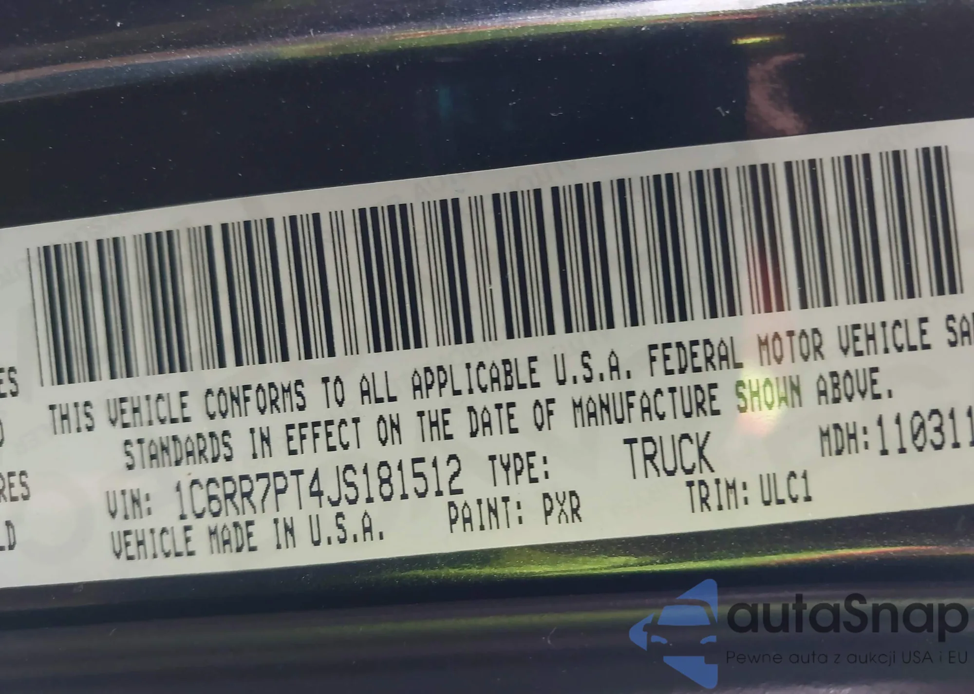 VIN: 1C6RR7PT4JS181512