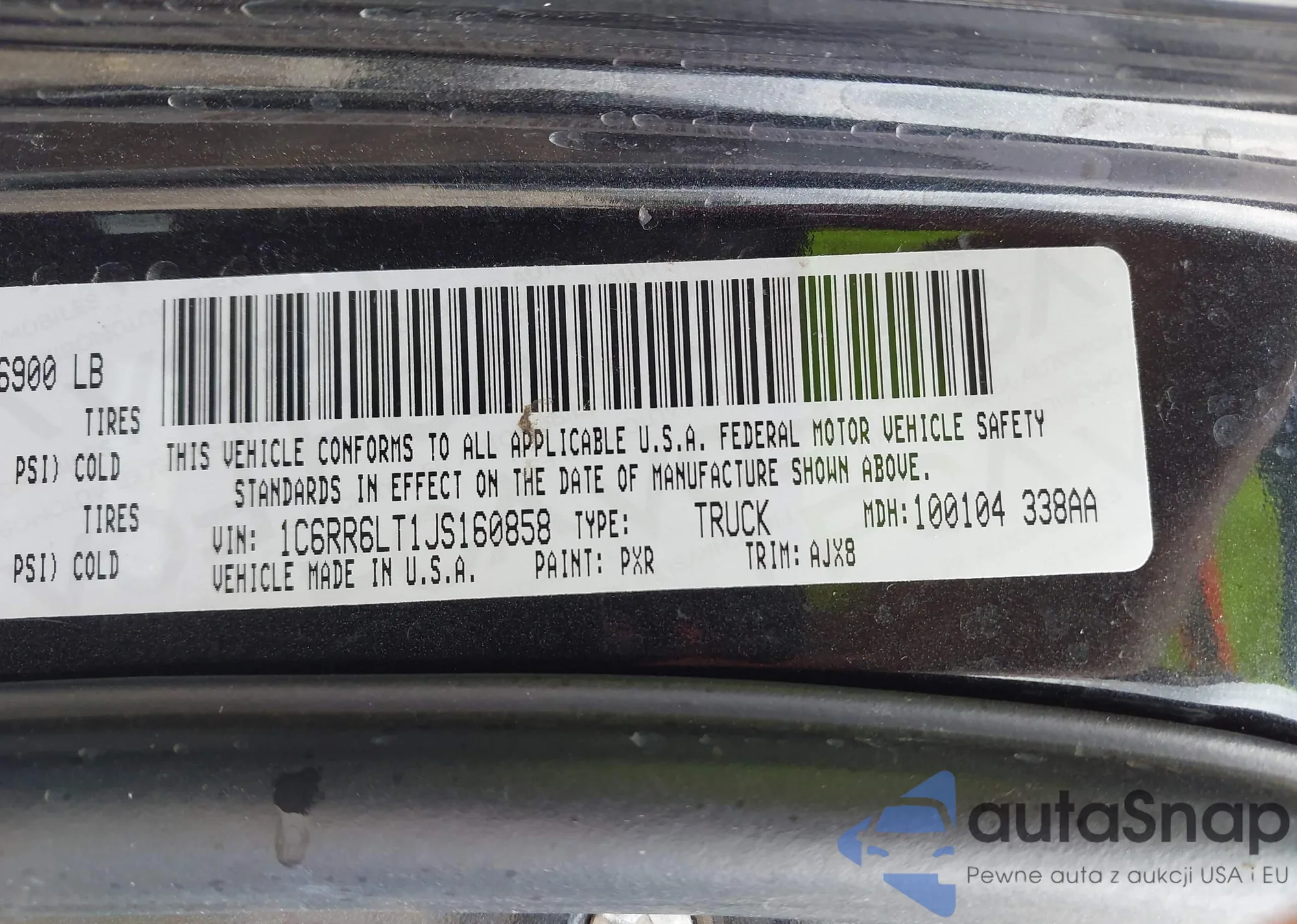 • VIN: 1C6RR6LT1JS160858