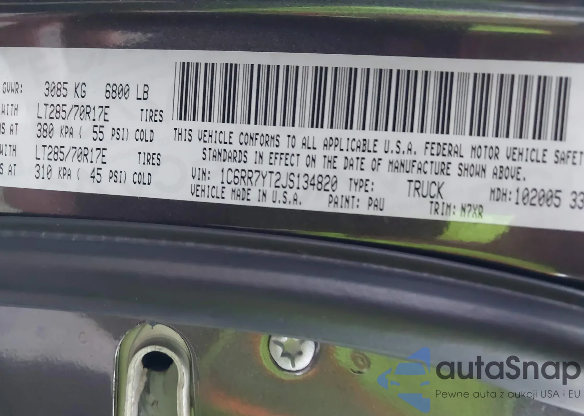 VIN: 1C6RR7YT2JS134820