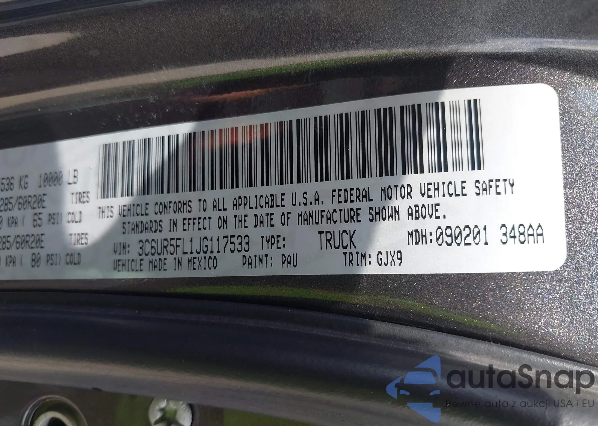 VIN: 3C6UR5FL1JG117533