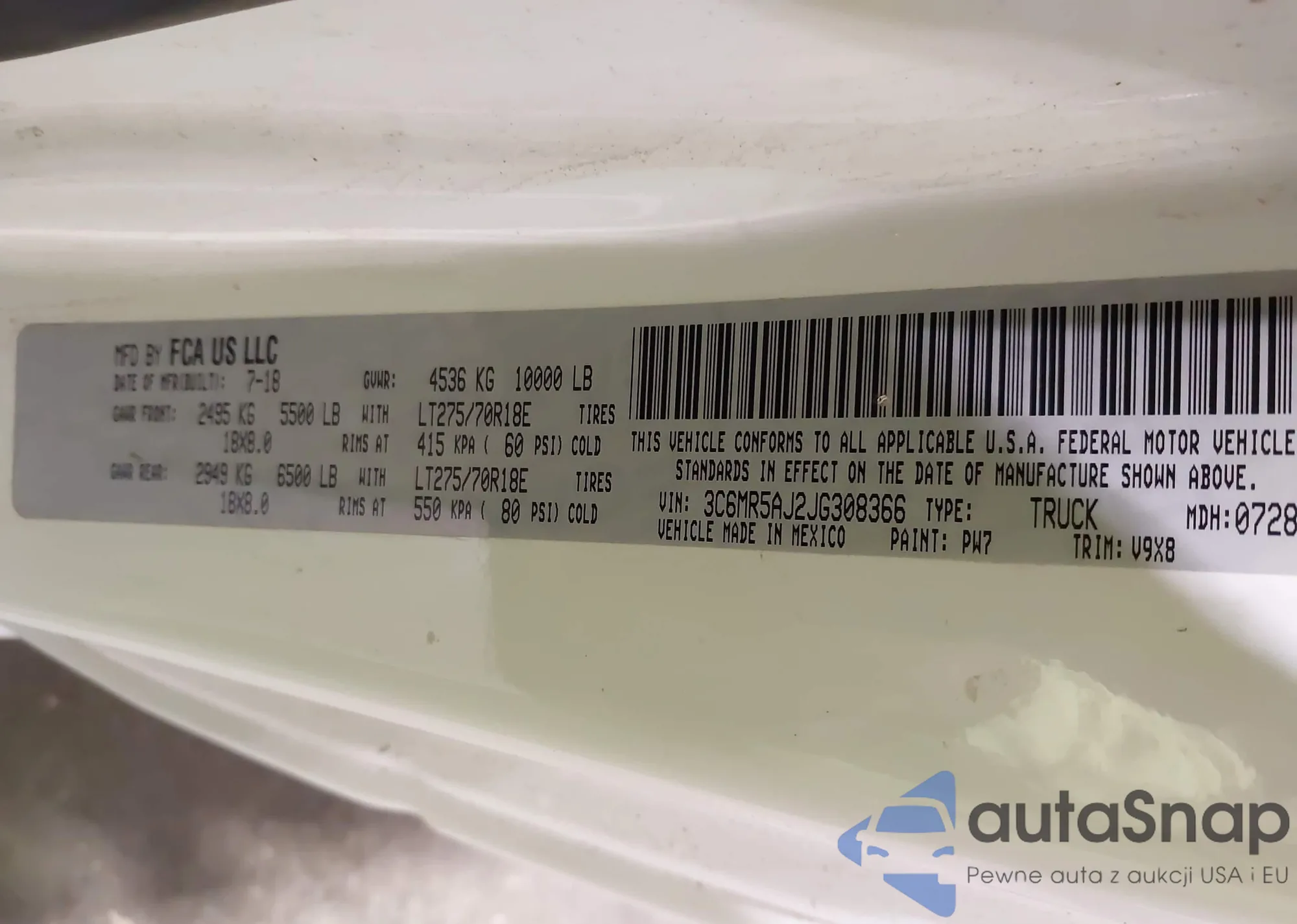 VIN: 3C6MR5AJ2JG308366