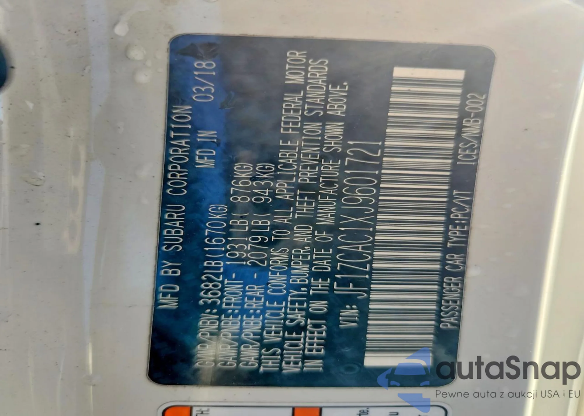 Автомобиль Subaru BRZ 2018 (VIN JF1ZCAC1XJ9601721) ранее не участвовал в торгах. Документы чистые, пробег соответствует или ниже среднего по рынку. Продаётся страховой компанией — рекомендуем покупку. Доставка в порт займет около 6–8 недель.