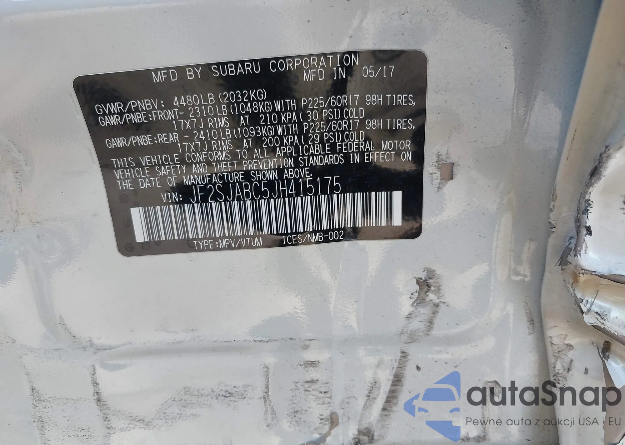 VIN: JF2SJABC5JH415175