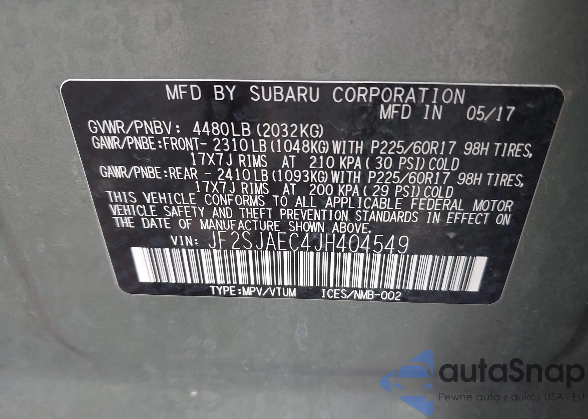 VIN: JF2SJAEC4JH404549