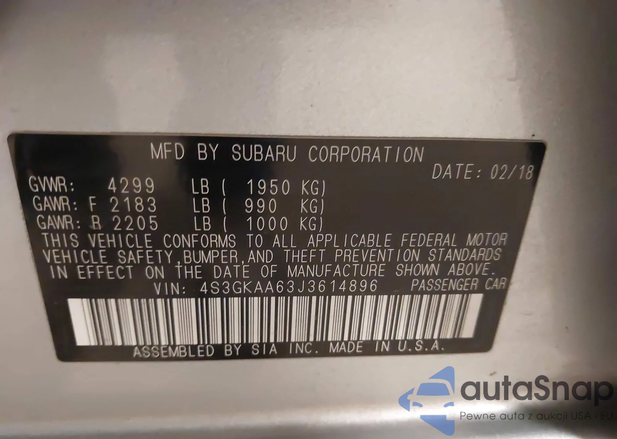 Автомобиль Subaru Impreza 2018 (VIN 4S3GKAA63J3614896) ранее не участвовал в торгах. Документы чистые, пробег соответствует или ниже среднего по рынку. Продаётся страховой компанией — рекомендуем покупку. Доставка в порт займет около 6–8 недель.
