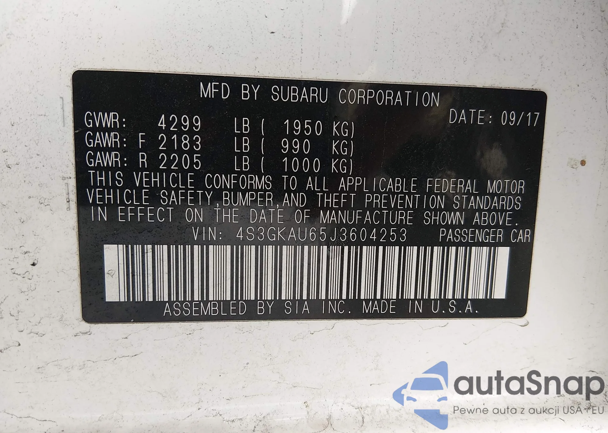 VIN: 4S3GKAU65J3604253