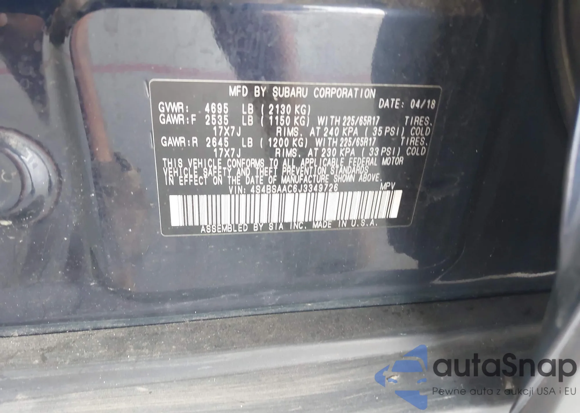 VIN: 4S4BSAAC6J3349726