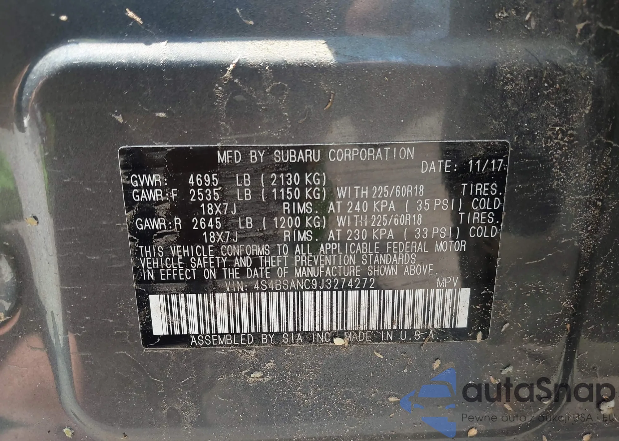 VIN: 4S4BSANC9J3274272