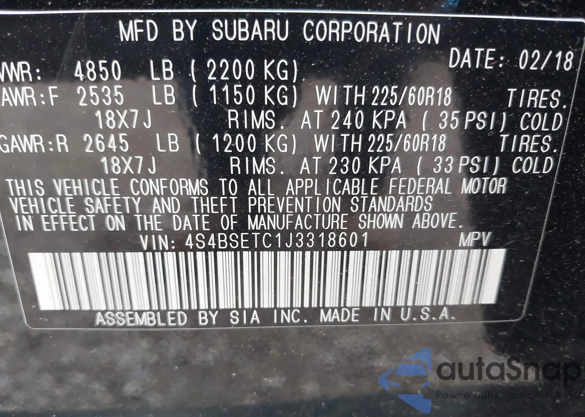 VIN: 4S4BSETC1J3318601