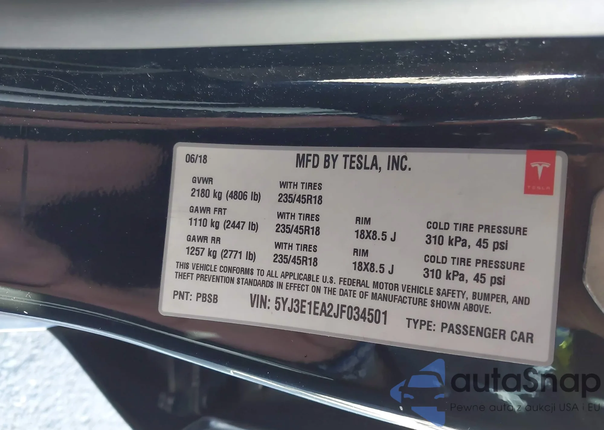 VIN: 5YJ3E1EA2JF034501