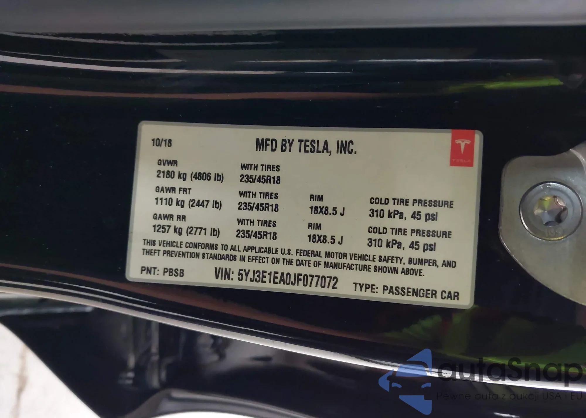 VIN: 5YJ3E1EA0JF077072