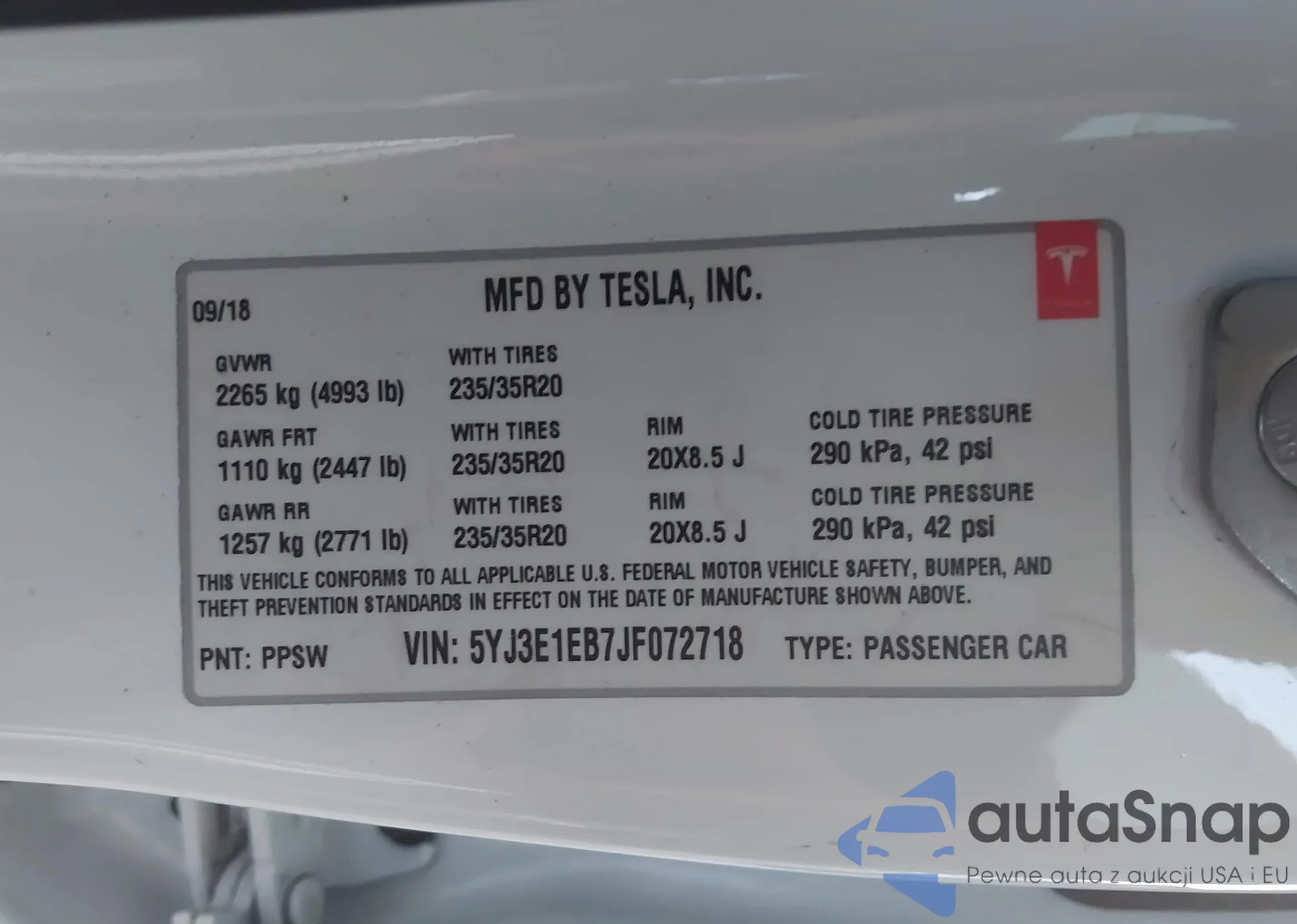VIN: 5YJ3E1EB7JF072718