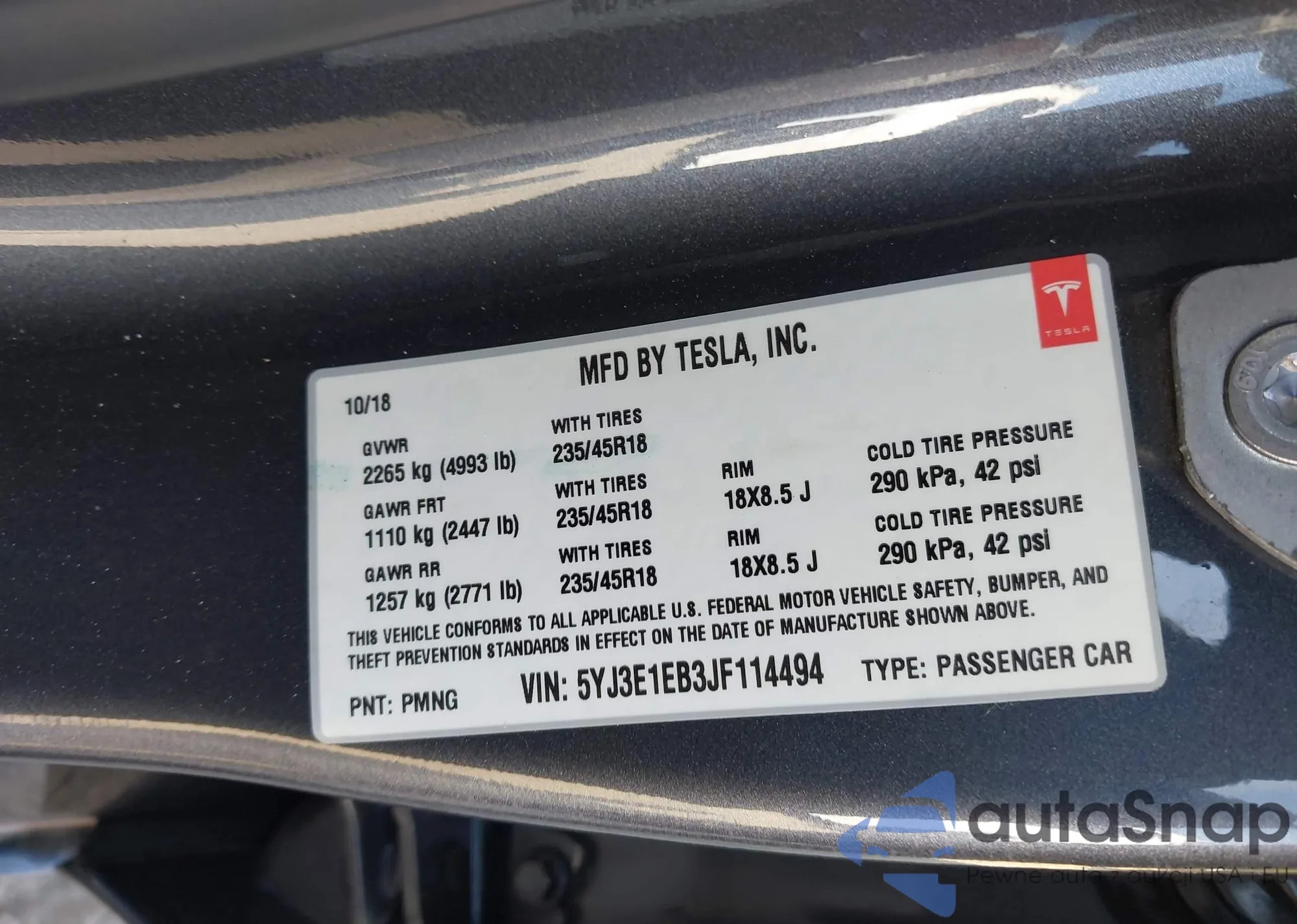 VIN: 5YJ3E1EB3JF114494