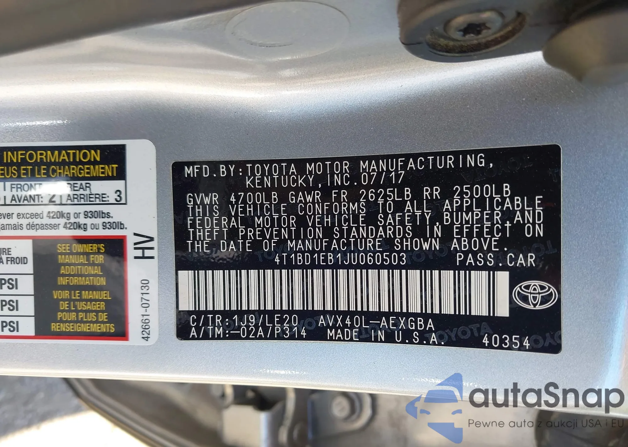 VIN: 4T1BD1EB1JU060503
