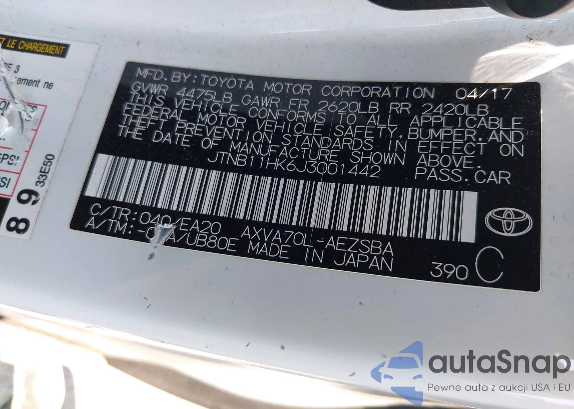 VIN: JTNB11HK6J3001442