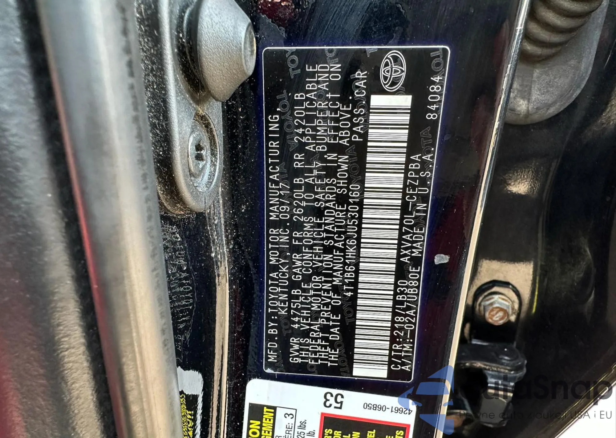 VIN: 4T1B61HK6JU530160