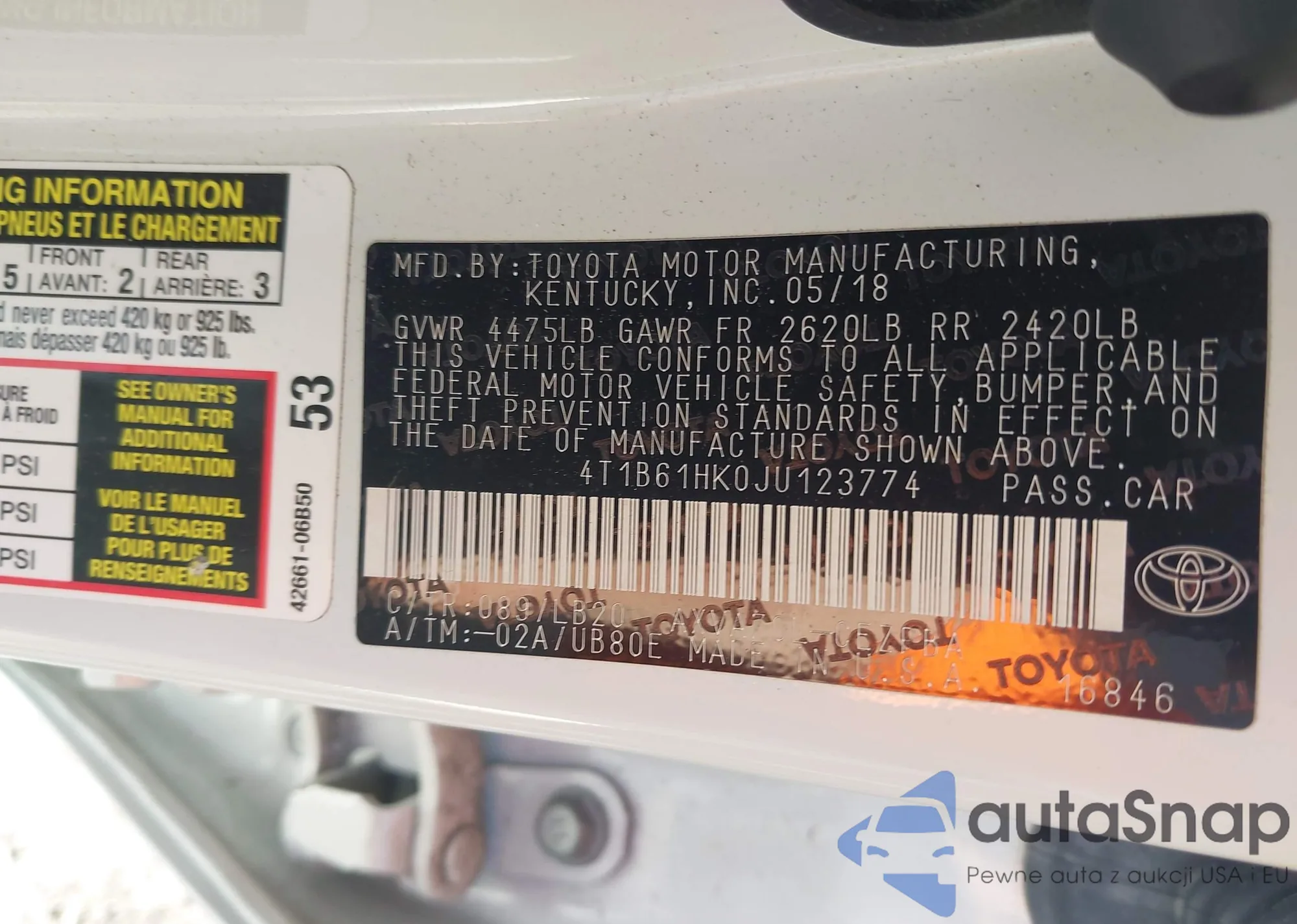 VIN: 4T1B61HK0JU123774