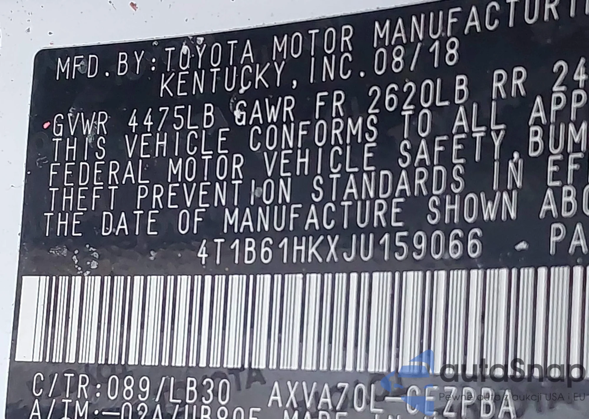VIN: 4T1B61HKXJU159066