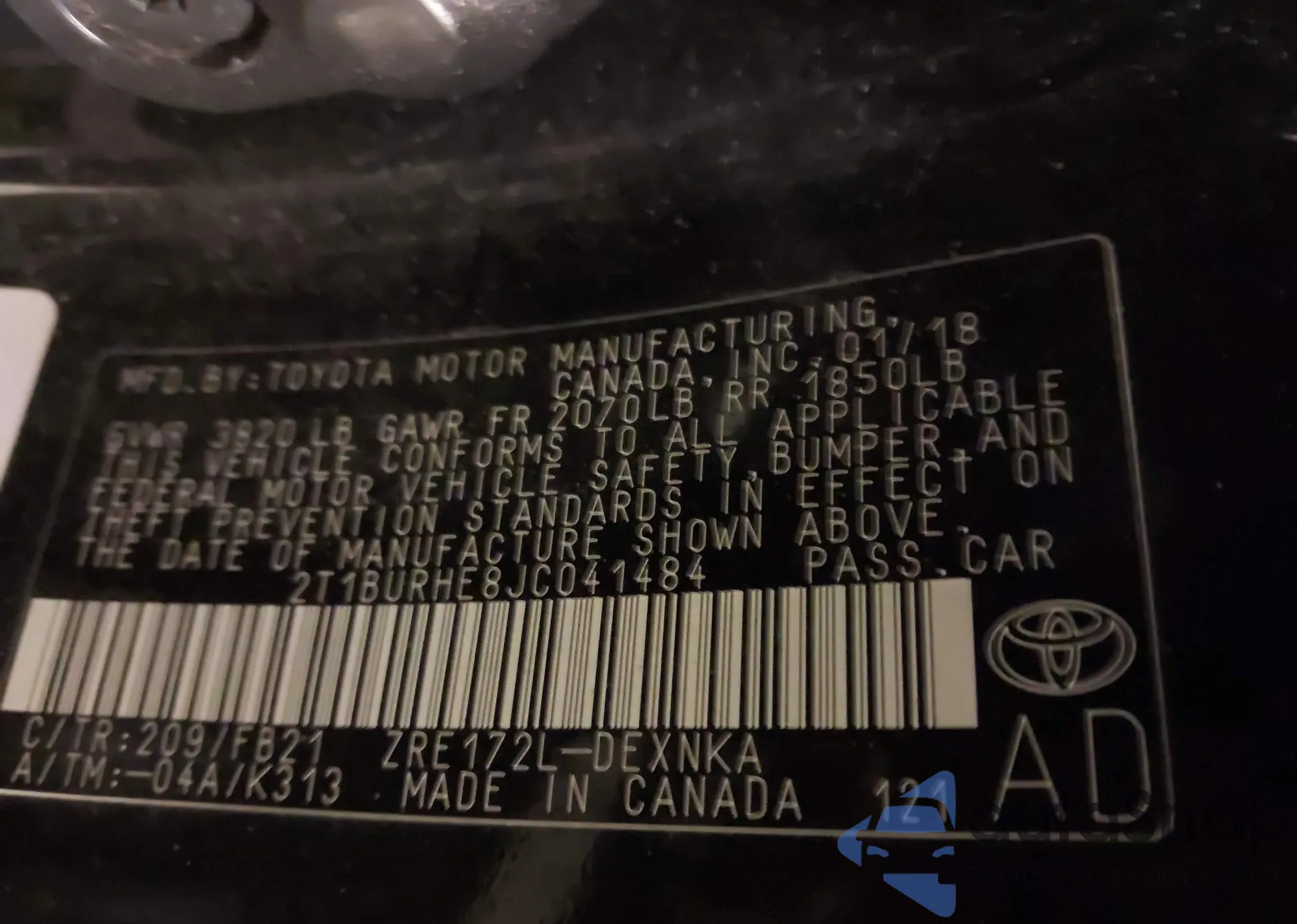 VIN: 2T1BURHE8JC041484