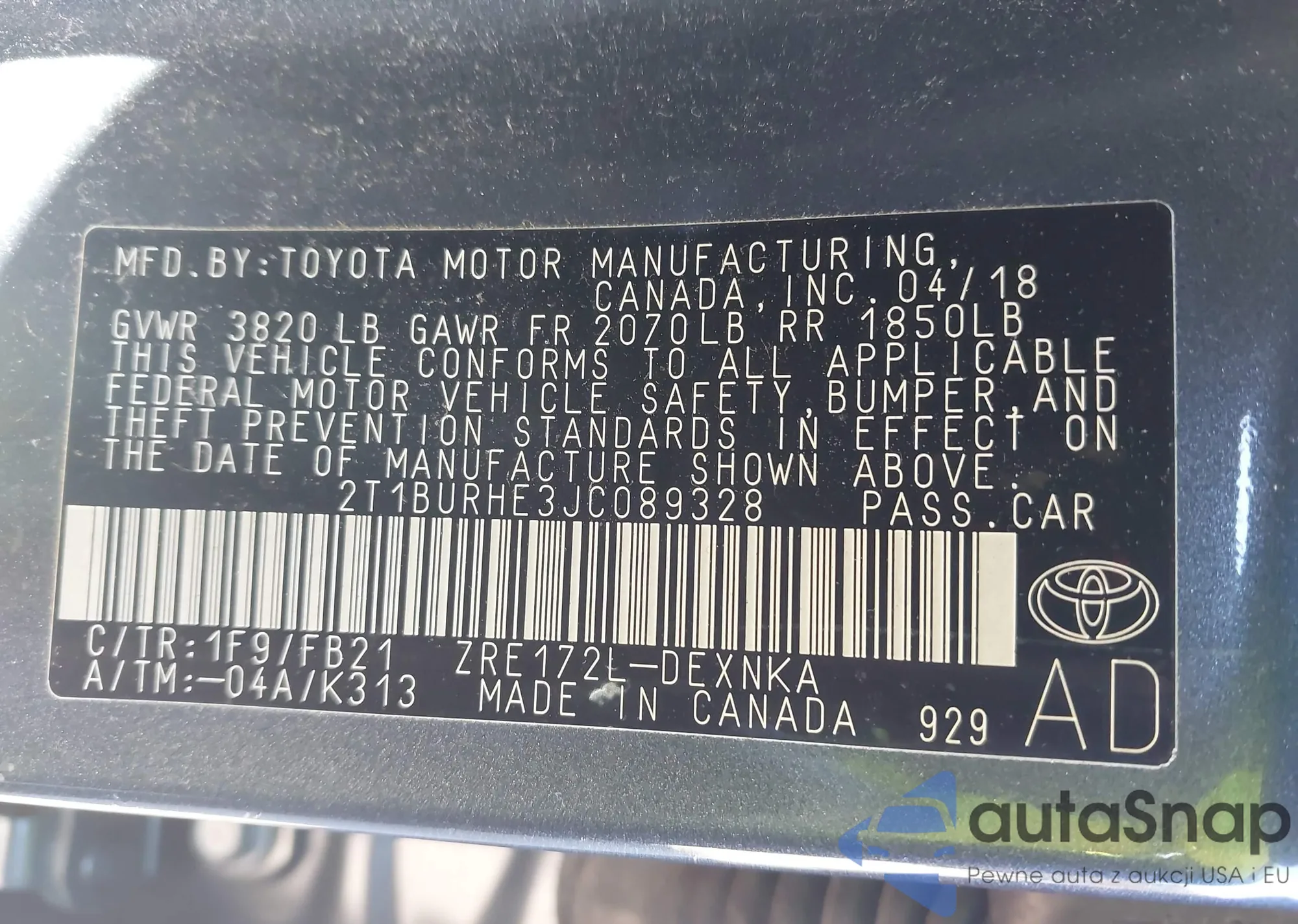 VIN: 2T1BURHE3JC089328