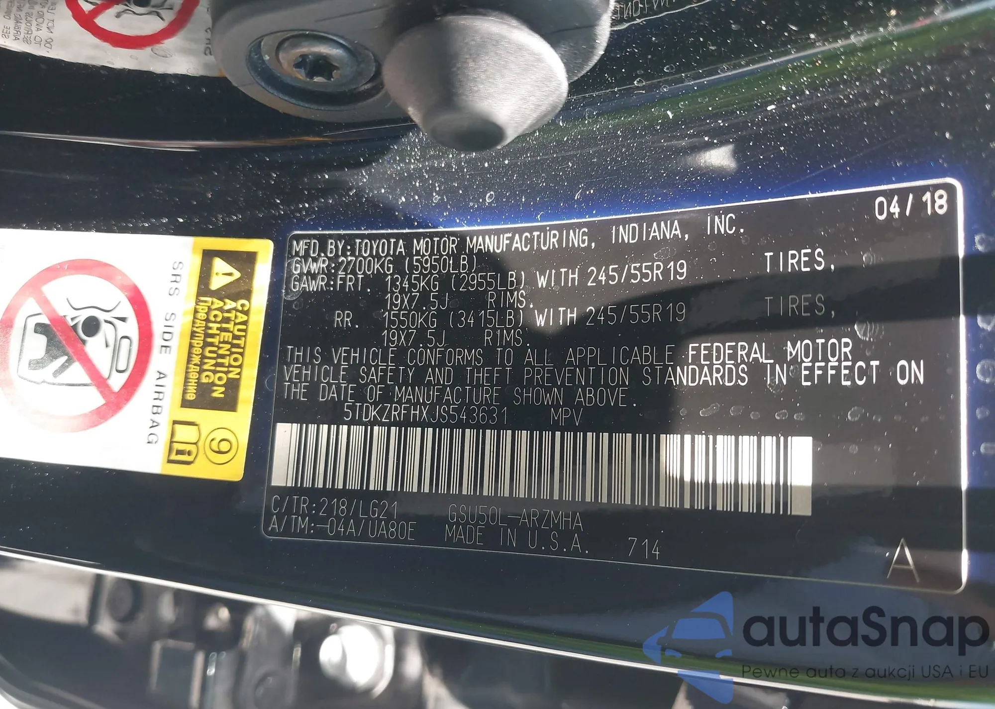 • VIN: 5TDKZRFHXJS543631