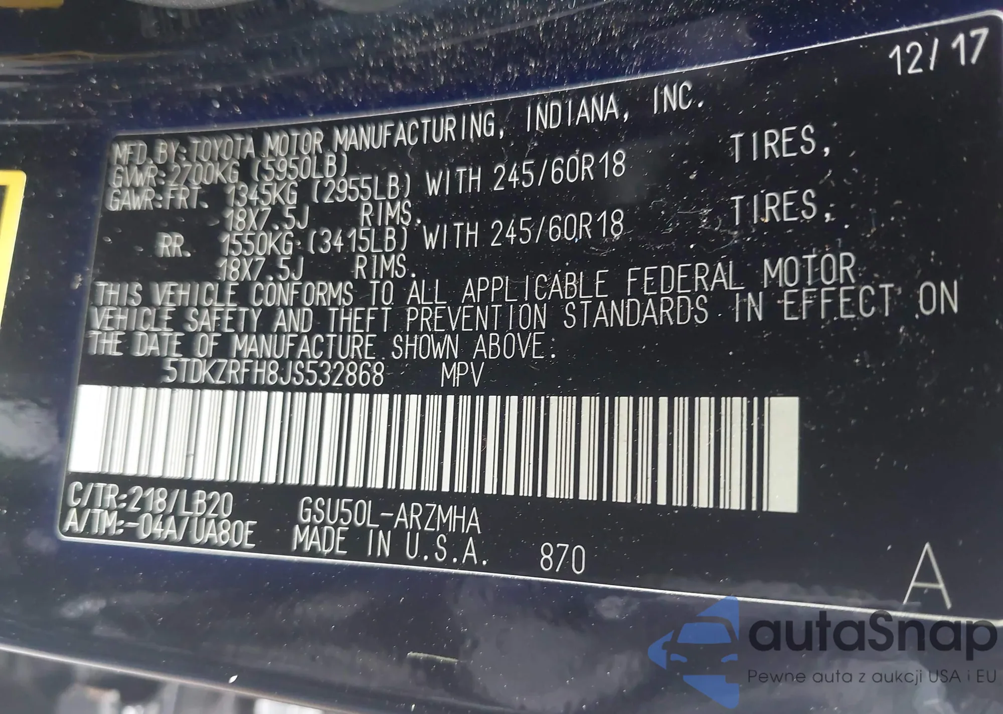 VIN: 5TDKZRFH8JS532868