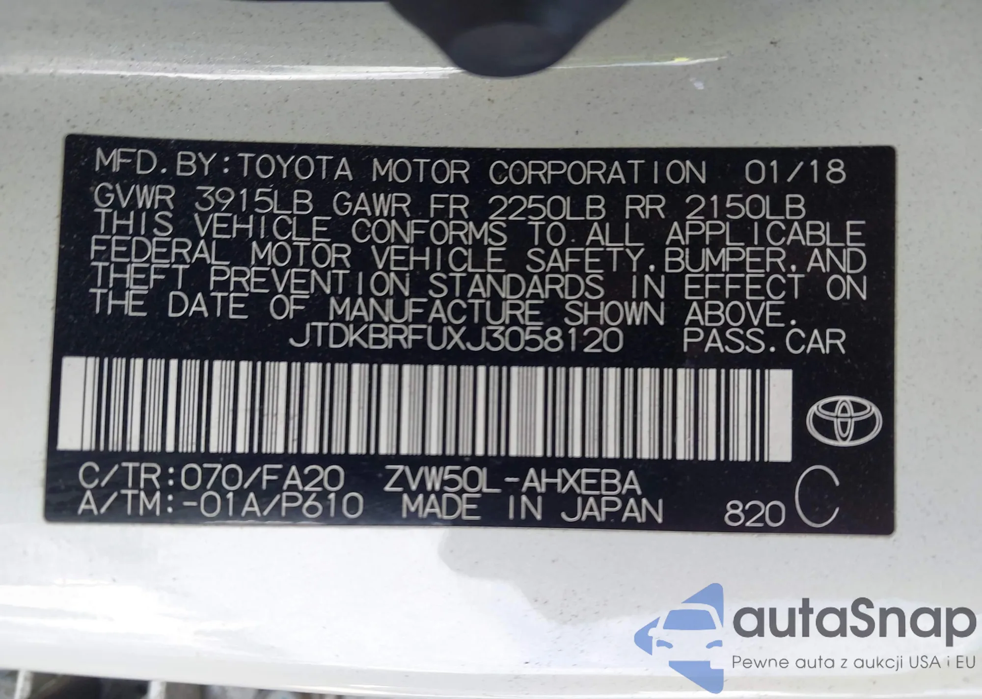 VIN: JTDKBRFUXJ3058120