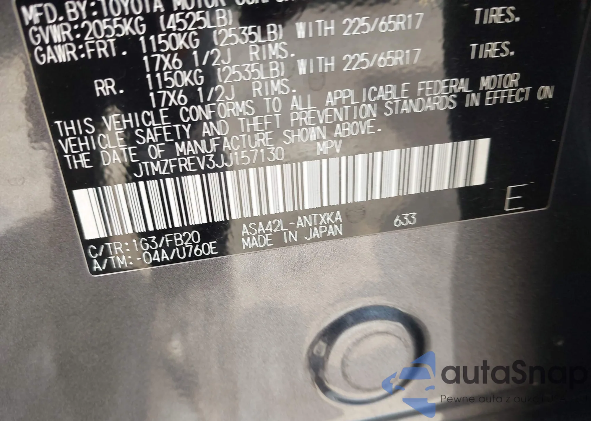 VIN: JTMZFREV3JJ157130