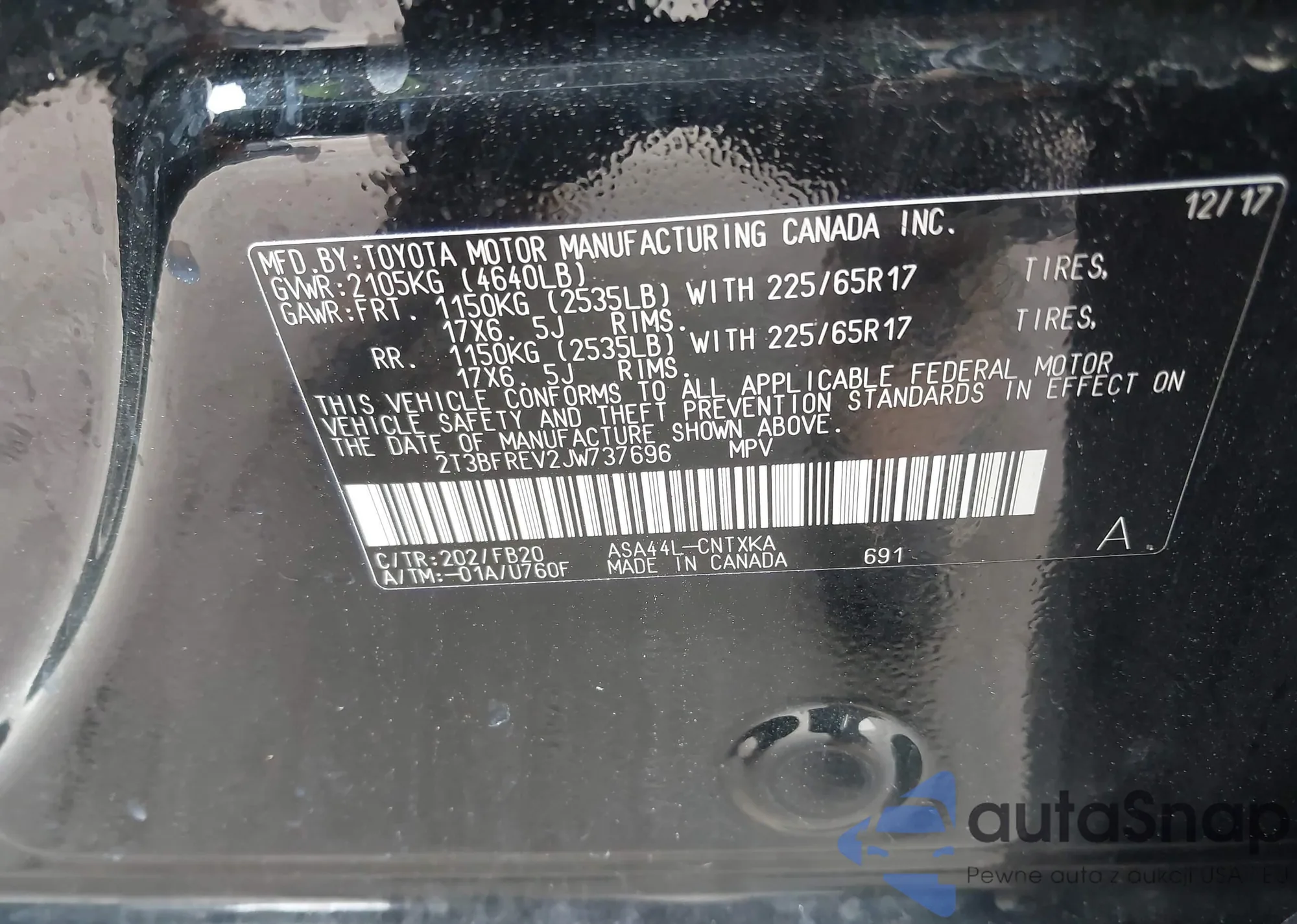 VIN: 2T3BFREV2JW737696