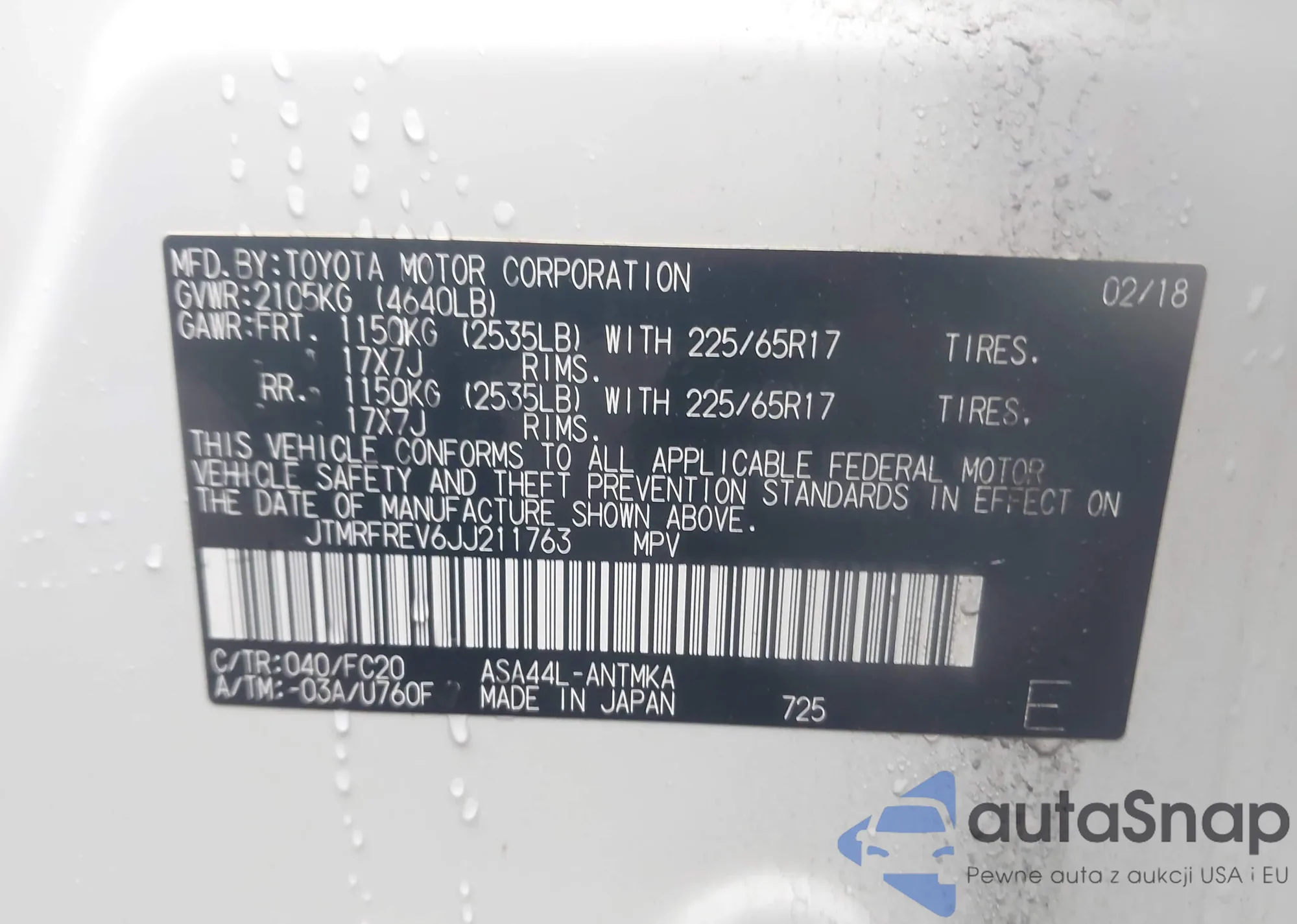 VIN: JTMRFREV6JJ211763