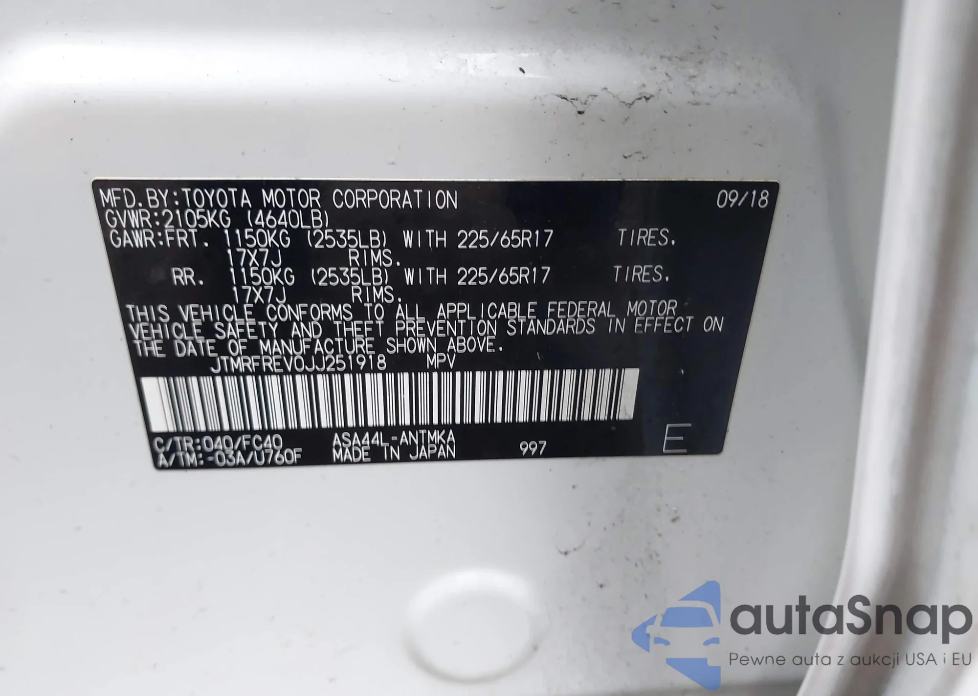 VIN: JTMRFREV0JJ251918