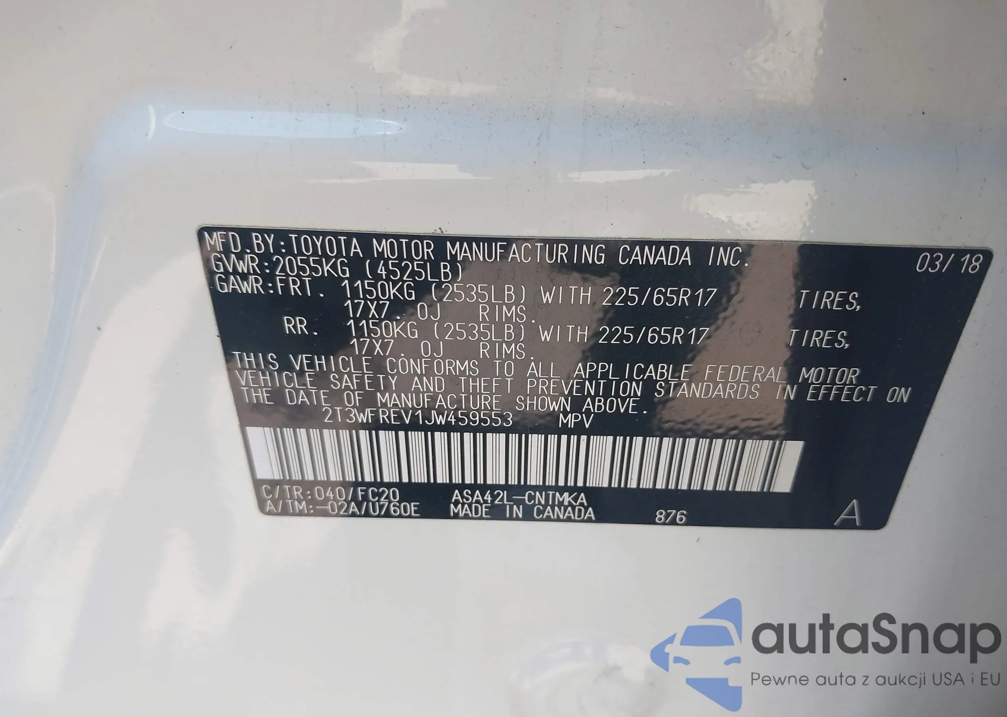 VIN: 2T3WFREV1JW459553