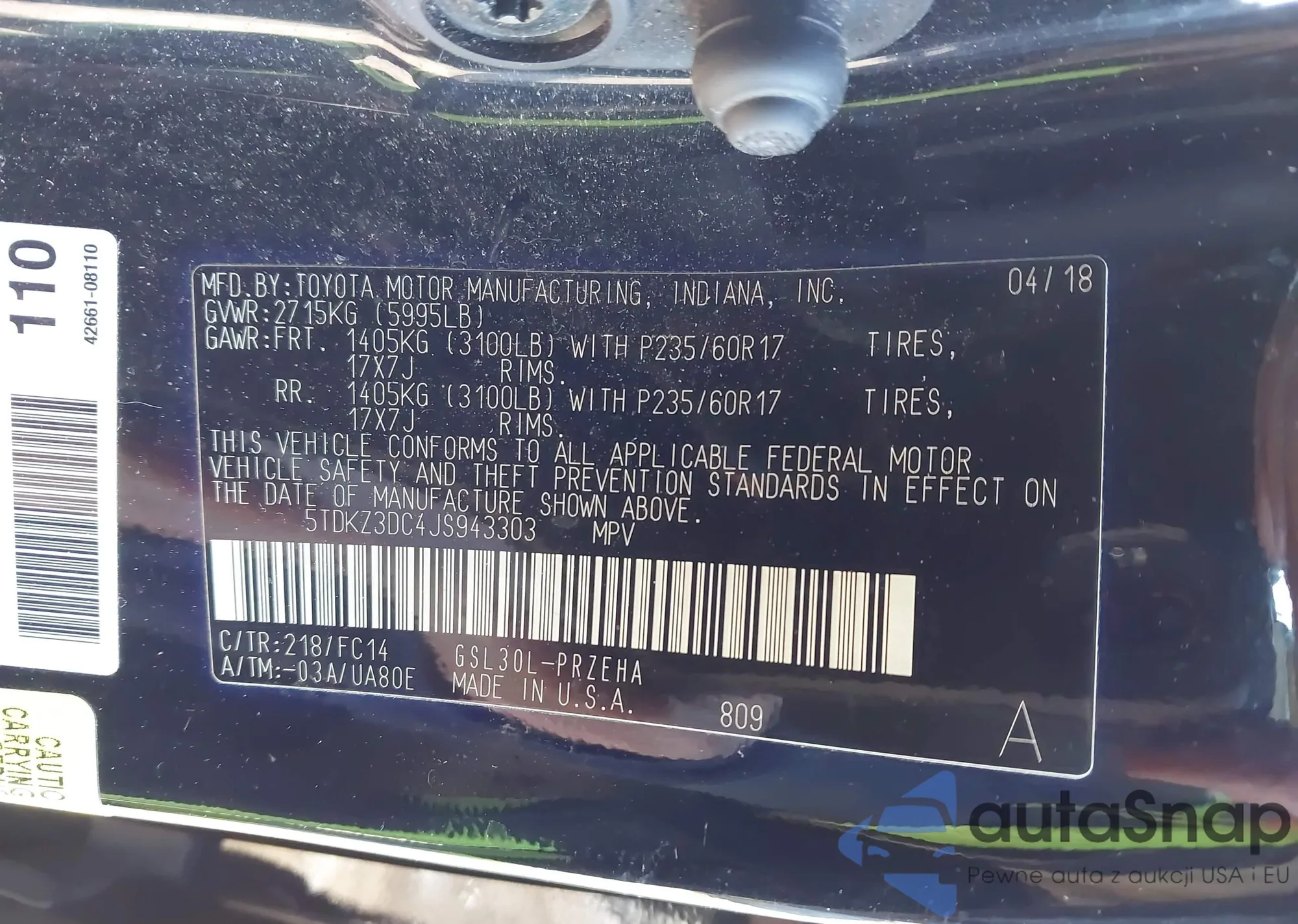 VIN: 5TDKZ3DC4JS943303