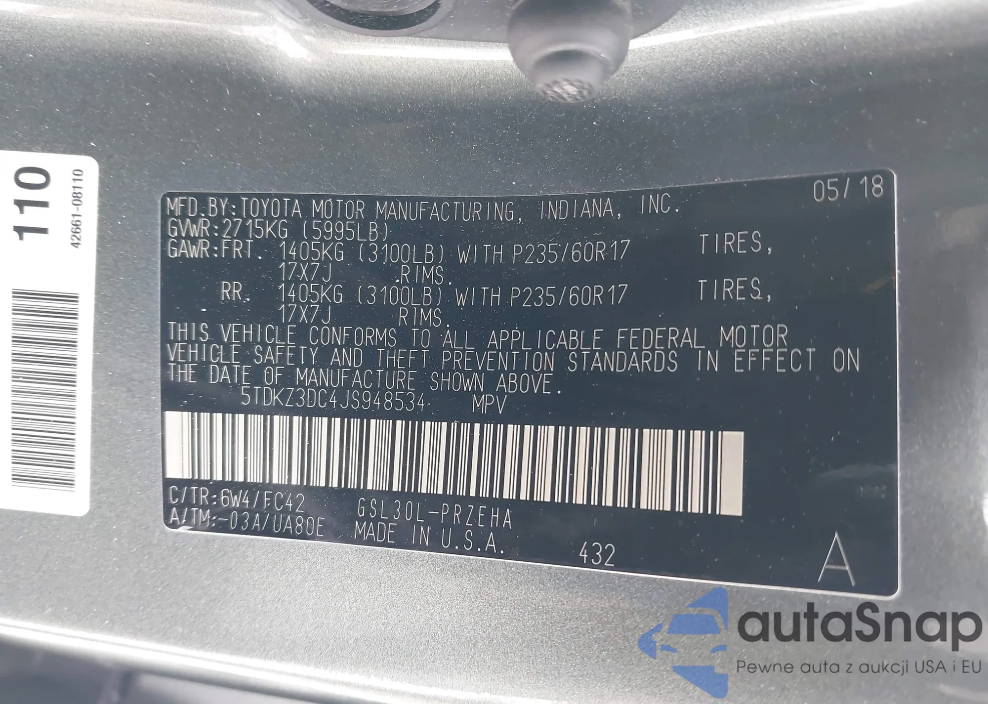 VIN: 5TDKZ3DC4JS948534