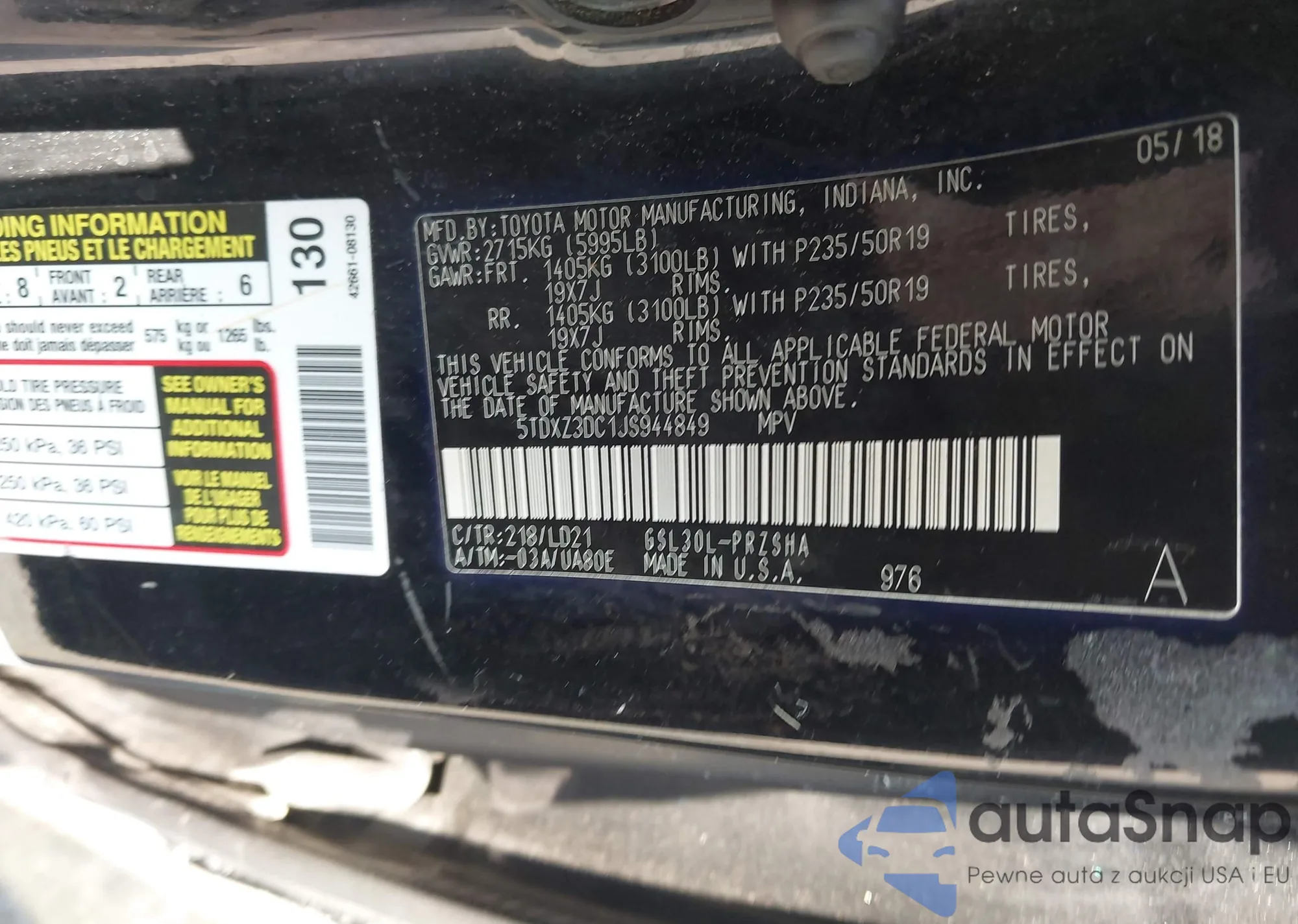 VIN: 5TDXZ3DC1JS944849