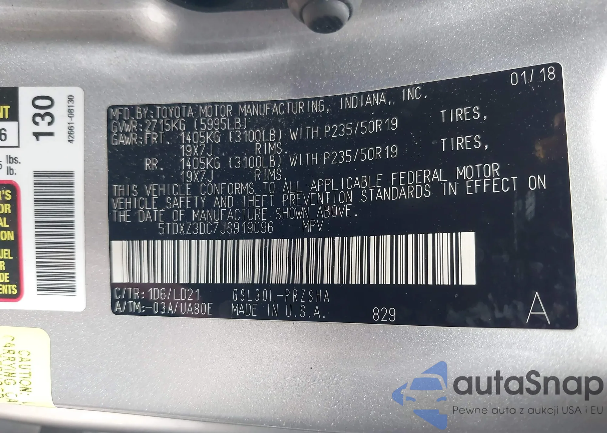 Автомобиль Toyota Sienna 2018 (VIN 5TDXZ3DC7JS919096) ранее не участвовал в торгах. Документы чистые, пробег соответствует или ниже среднего по рынку. Продаётся страховой компанией — рекомендуем покупку. Доставка в порт займет около 6–8 недель.