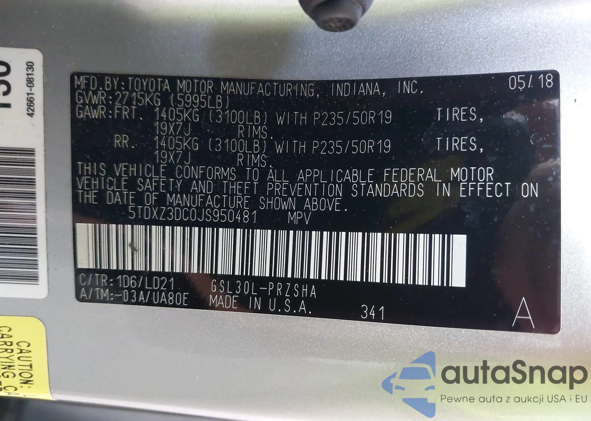 VIN: 5TDXZ3DC0JS950481