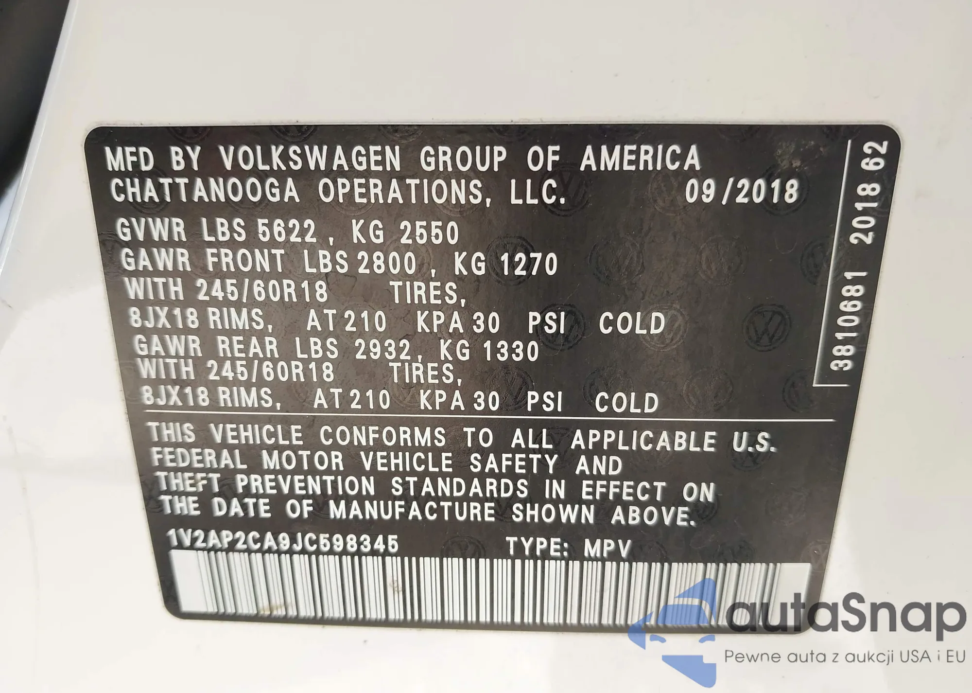 VIN: 1V2AP2CA9JC598345