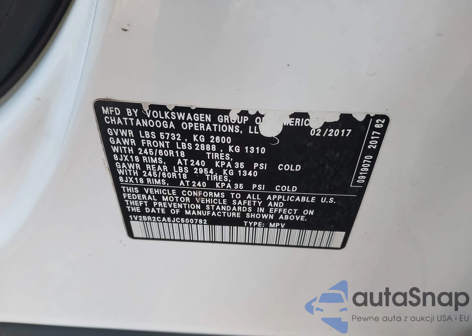VIN: 1V2BR2CA5JC500782