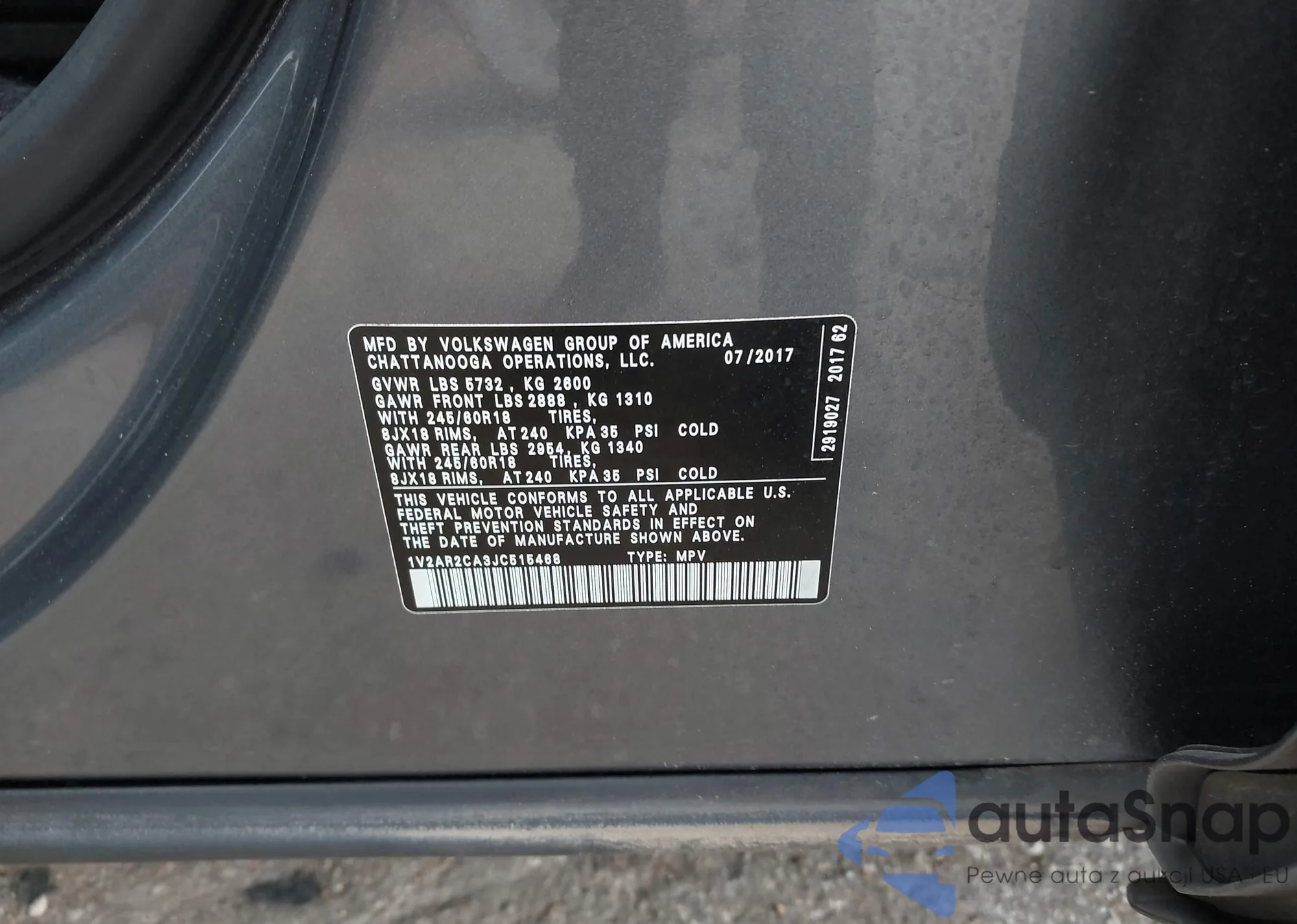 VIN: 1V2AR2CA3JC515468