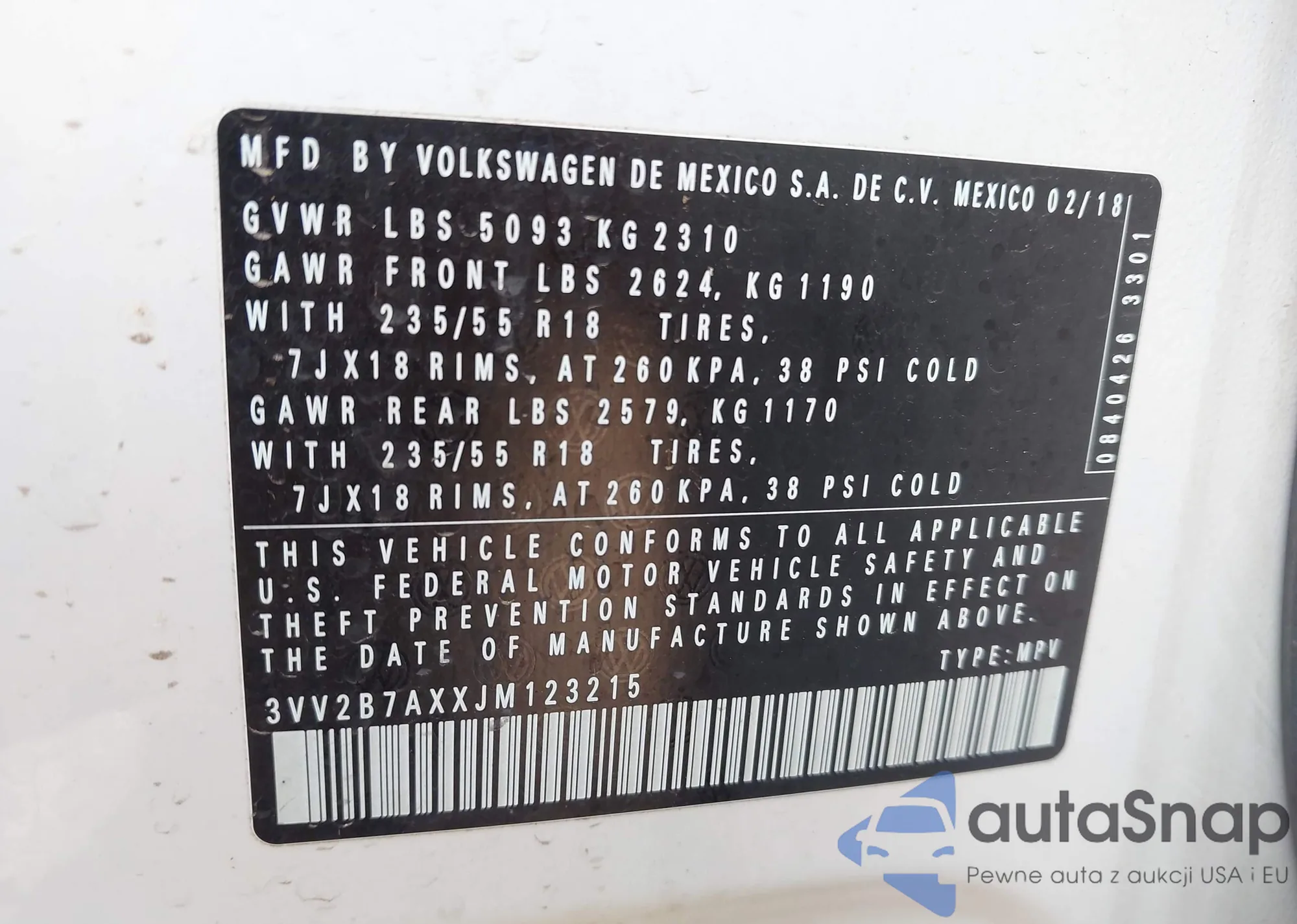 VIN: 3VV2B7AXXJM123215