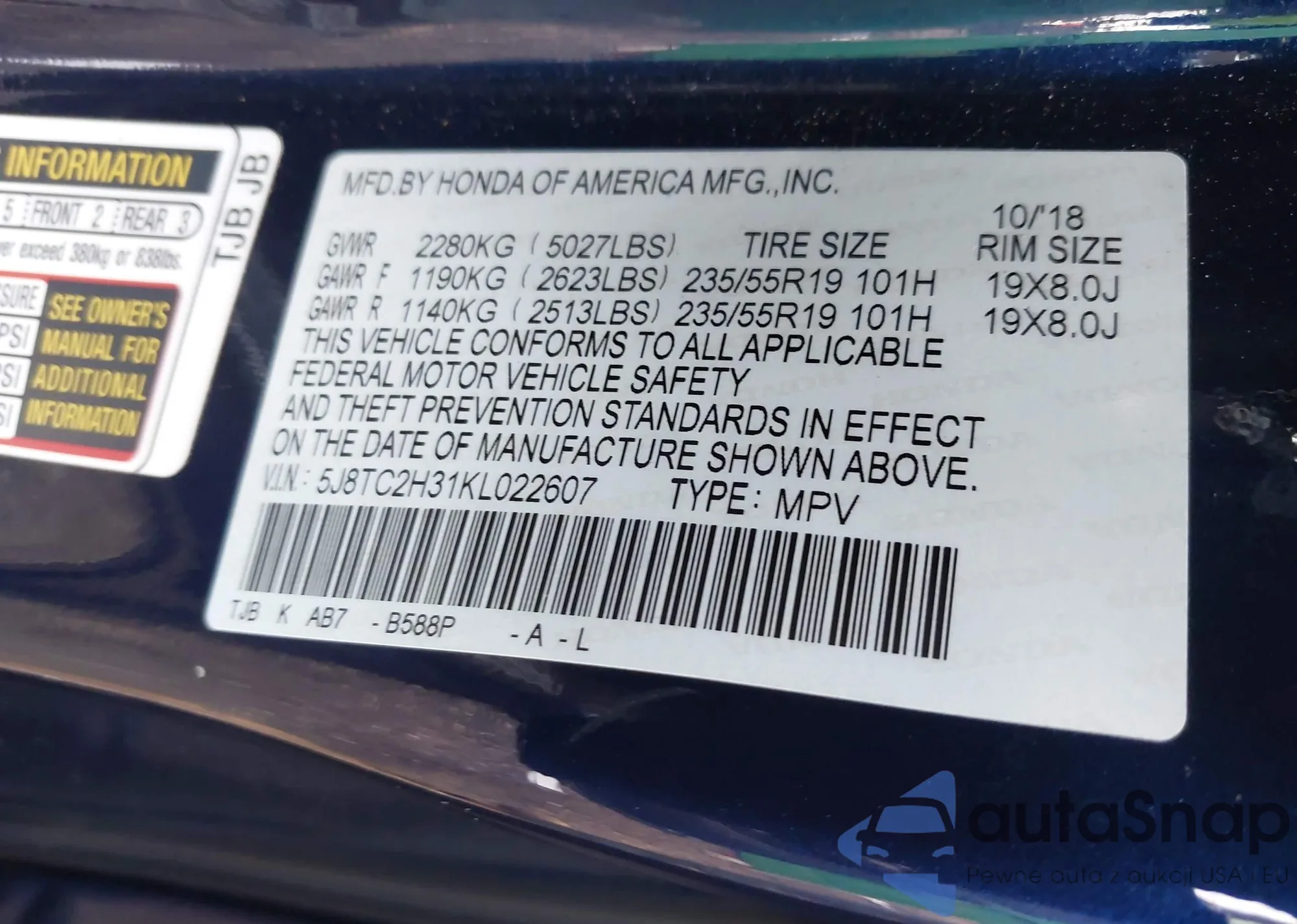 VIN: 5J8TC2H31KL022607