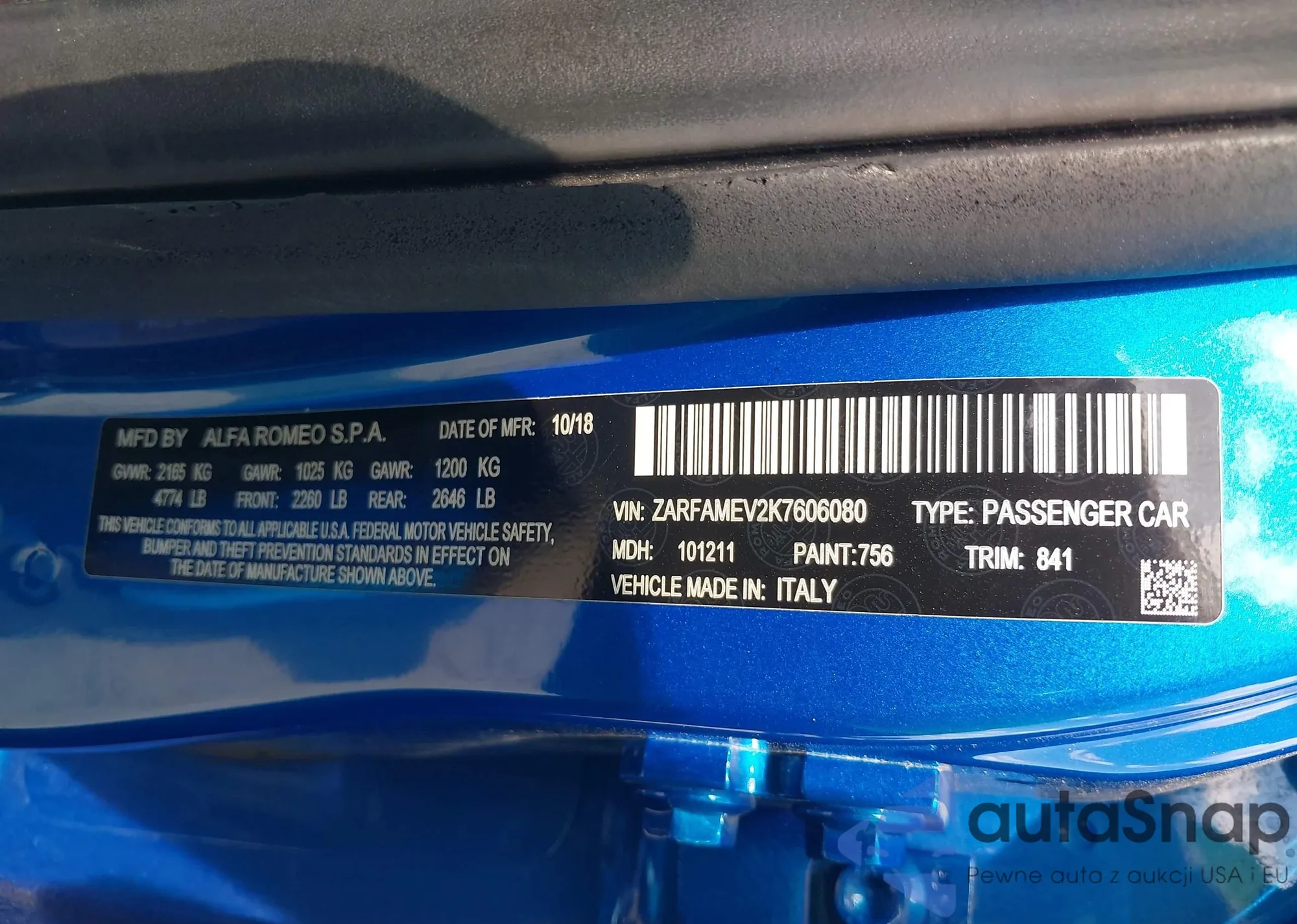 VIN: ZARFAMEV2K7606080