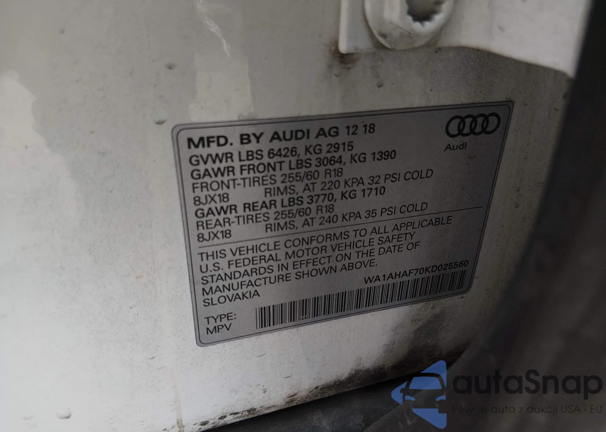 • VIN: WA1AHAF70KD025560