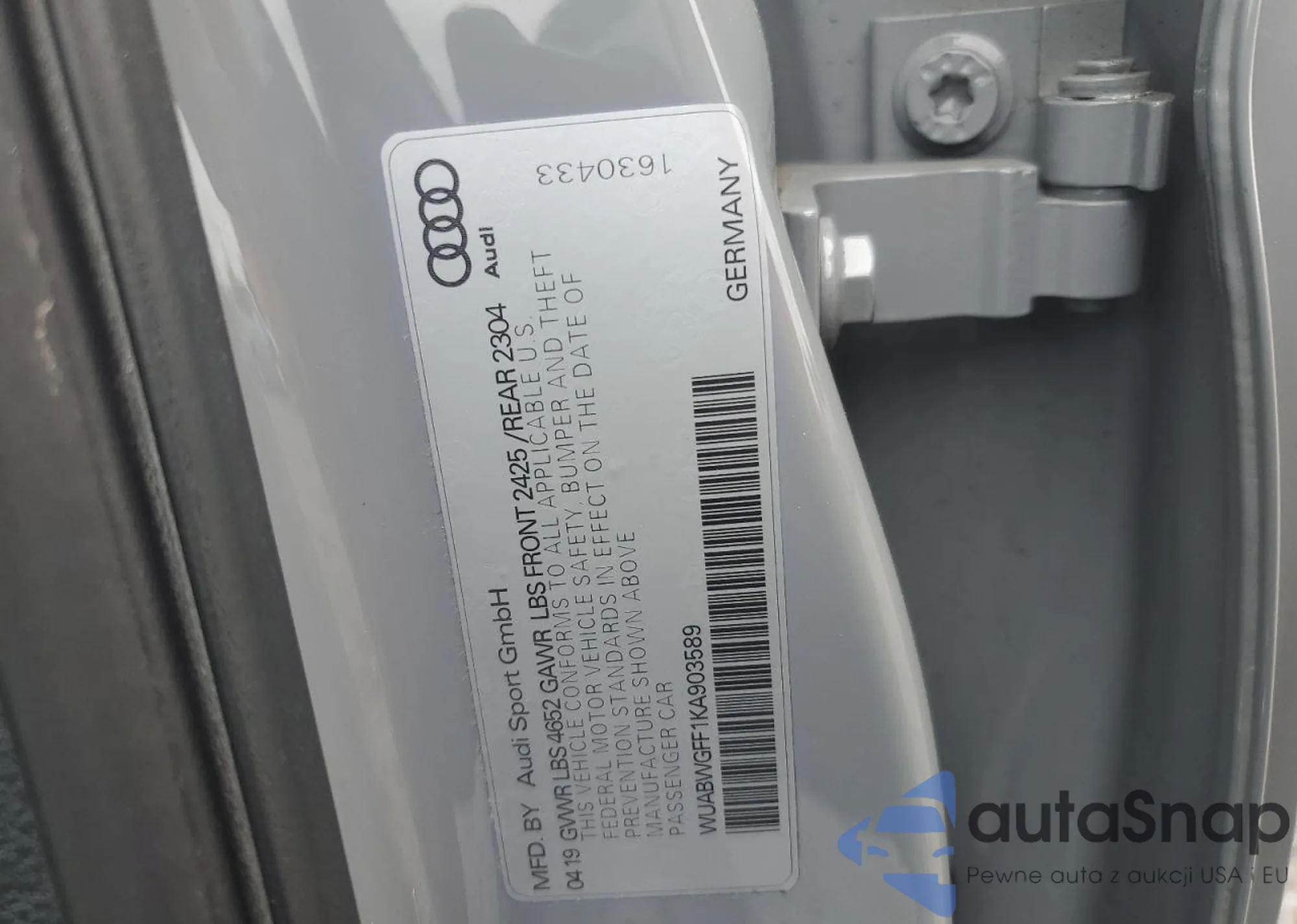 VIN: WUABWGFF1KA903589