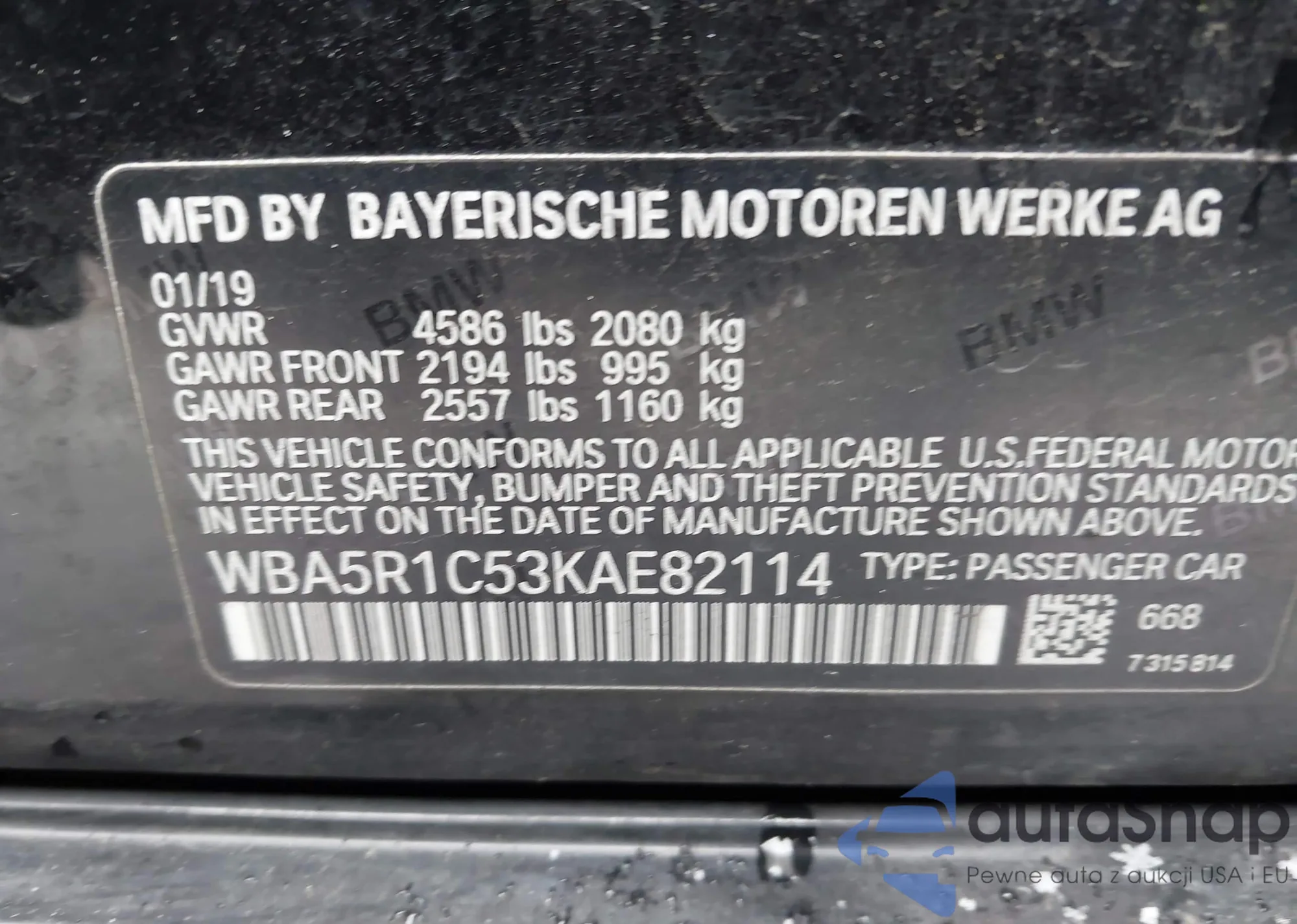 VIN: WBA5R1C53KAE82114
