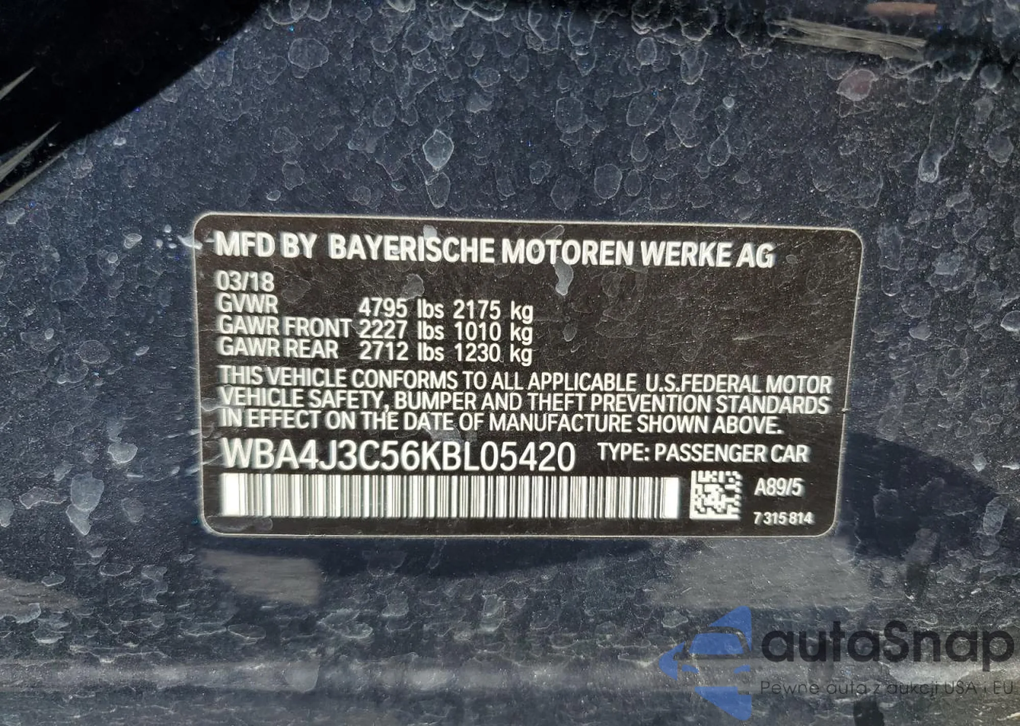 VIN: WBA4J3C56KBL05420