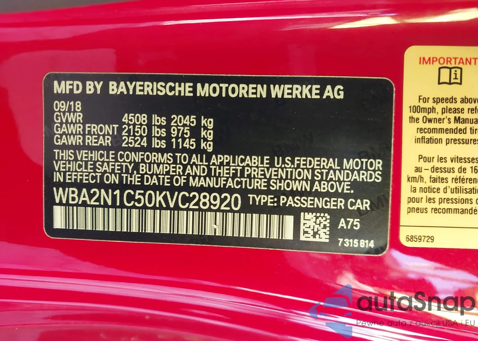 VIN: WBA2N1C50KVC28920